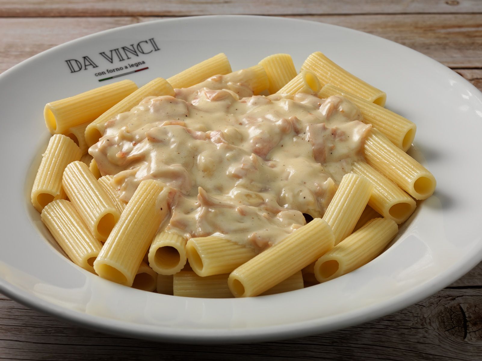 Con salsa gorgonzola, serrano y hojas de albahaca.